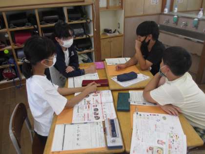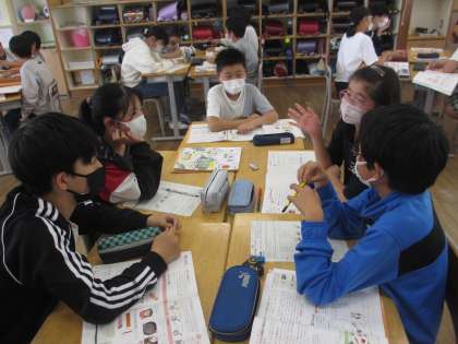炒める順番や、火加減等についてグループで話し合っています。いよいよ来週は調理実習です。