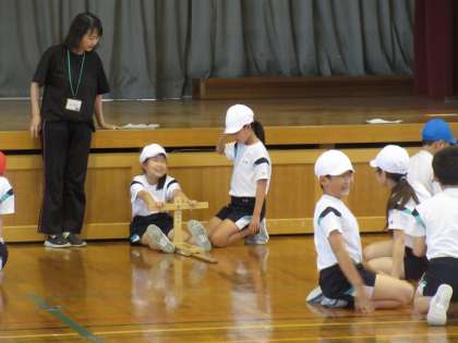 反復横跳び(敏捷性)、長座体前屈(柔軟性)、上体起こし(筋持久力)の記録を測定しました。