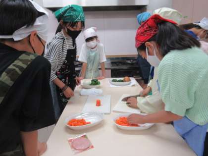 健康のよい食事として、野菜炒めへの挑戦です。さっそく野菜を調理しやすいように切っていきました。