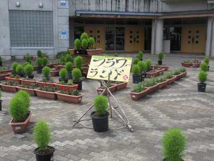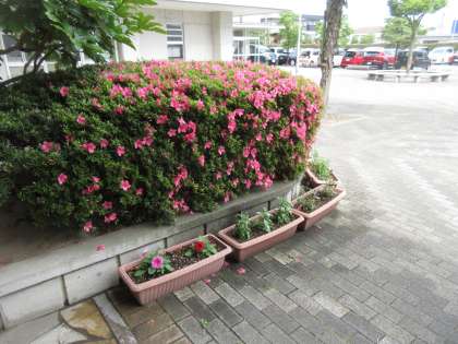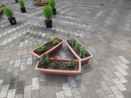 にこさわ広場のプランターが美しく、そして楽しく並んでいます。