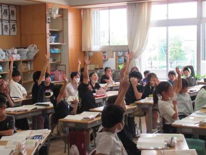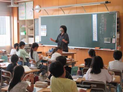 「だれに?」「どんな?」二つの視点があります。気持ちの伝わる手紙を書く学習を始めるにあたって、この二つの視点について話し合いました。子供たちは、既に書きたくてうずうずしている様子です。