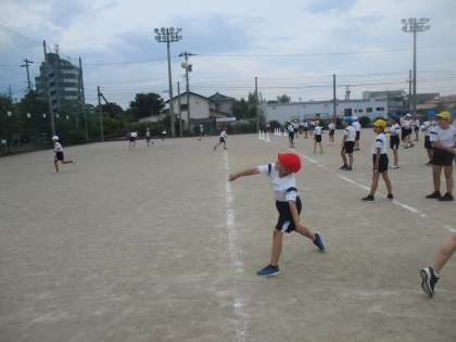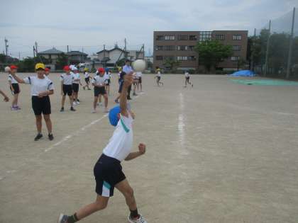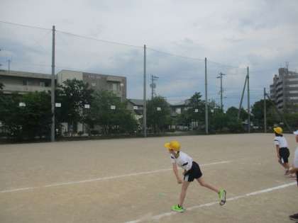 今日の体育はソフトボール投げの練習をしました。投げる角度は45度になるように意識することや、体全体の回転を使って投げることを意識しながら練習しました。自己記録が更新できるといいですね。