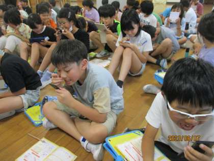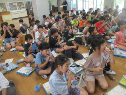 今日は正しい歯の磨き方や、歯肉炎の予防についてDVDを見ながら学びました。また、歯ブラシやデンタルフロスを実際に使って体験し、歯の隙間に至るまできれいにすることが大切であると実感した子供たちでした。