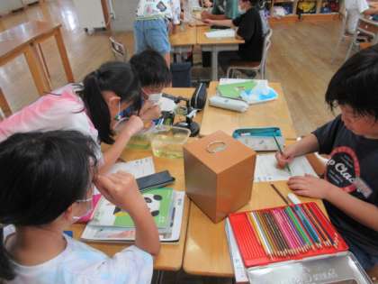 子供たちは細かな部分までよく観察して、気付いたことを絵や文で記録していきました。