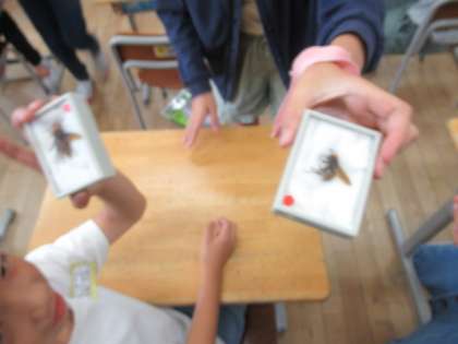 今日は、標本を科学博物館からお借りして、いろいろな成虫の体のつくりをリアルに確かめることができました。