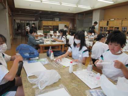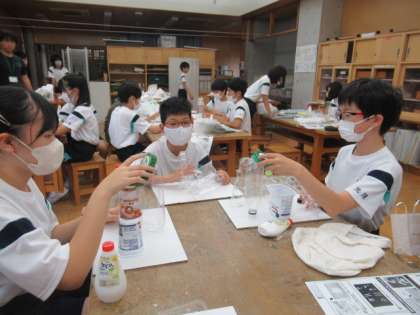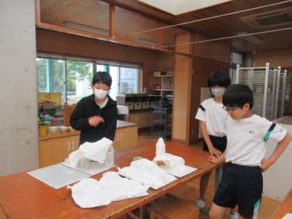 他の学級の作品を参考にしながら製作開始です。今日は土台部分の準備から始めました。