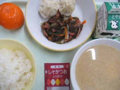 今日のチャプチェには、豚肉、たまねぎ、ピーマンの他、もずくが入っています。もずくは昆布やわかめと同じ海藻の仲間です。成長期に大切な栄養や、おなかの中をきれいにする食物繊維がたっぷり含まれています。