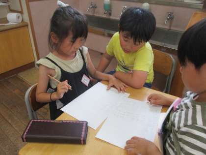 係活動の計画を立てました。クイズやゲームを考えたり、アンケートを作ってどんなイベントをするのか考えたりしました。1年生なりに、もっと楽しく仲良しなクラスにするためにアイディアを出し合いました。