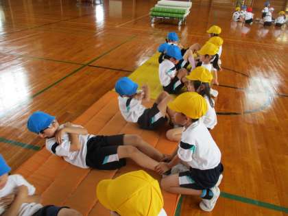 今日は上体起こしと長座体前屈の体力テストを行いました。上体起こしでは、ペアになって取り組み、頑張っている友達を応援する姿がみられました。テストが終わった後に片付けや整列もテキパキできるようになってきました!