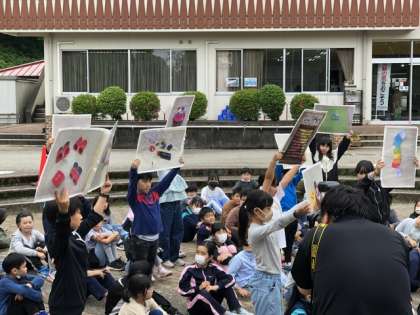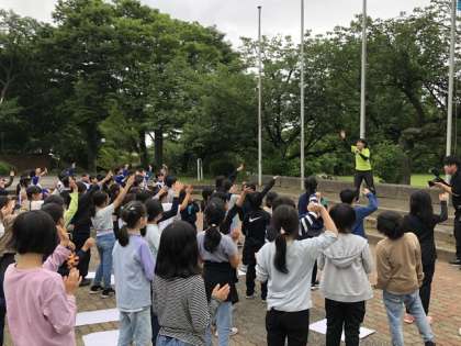 桜谷小学校のお友だちと行いました。互いに学校紹介をした後、一緒にゲームを楽しみました。