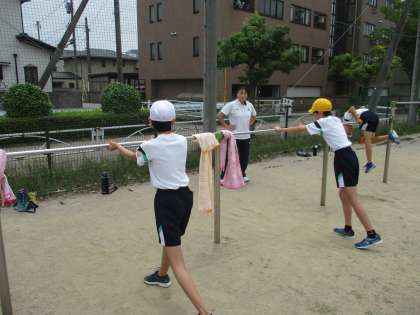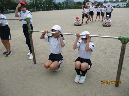 6年生 鉄棒講習会 公開日 2023/06/19 更新日 2023/06/19 6年 講師の先生をお招きして、鉄棒講習会を行いました。タオルを使って逆上がりの練習をする方法を教えていただいたことで、できる技が増えた子供がたくさんいました。これからも練習して、技を磨きたいと思います。