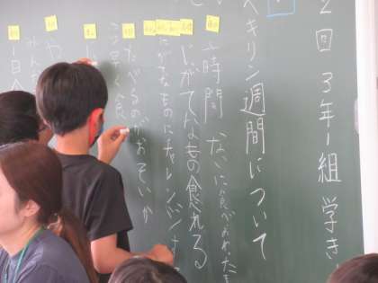 たべキリン週間の取組について話し合いました。子供たちは、自分の考えを積極的に述べることができました。