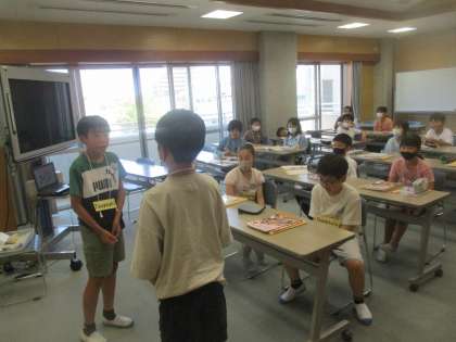 今日はペアになって誕生日と誕生日に欲しいものを聞き合う活動を、学級の仲間たちの前で行いました。みんなリアクションをしたり、スムーズに会話したりしていました。