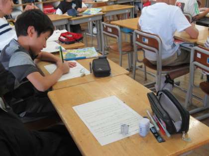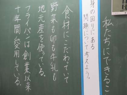 会話の内容を捉えて情報を整理する学習です。実際にありそうな文を例にして、書き言葉に直していきました。