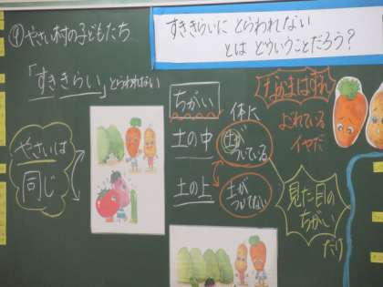 見かけだけで判断しないこと、違いよりももっと大切なことがあることを、野菜を例にして考えました。