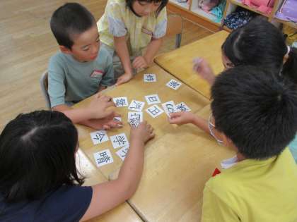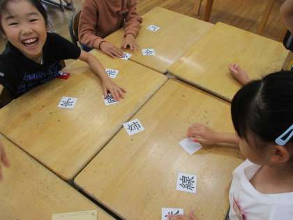 国語科の学習で、同じ部分をもつ漢字について学習しました。カードをつかってペアを作りながら楽しく考えました。