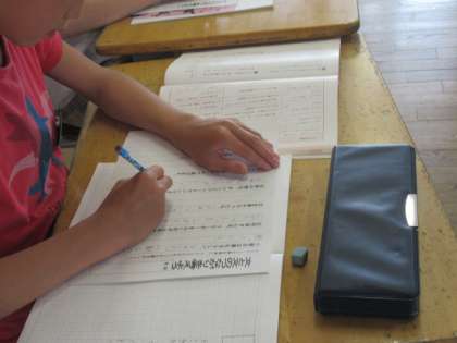 二つの文をどのようなつなぎ言葉でつなぐと文意がきちんと伝わるのか、実際に文づくりを通して考えていきました。