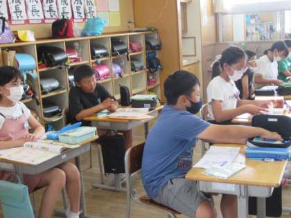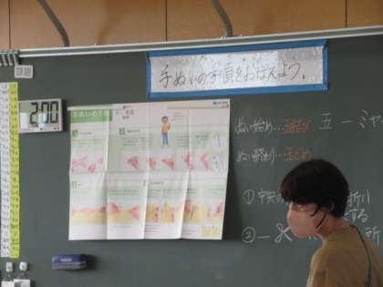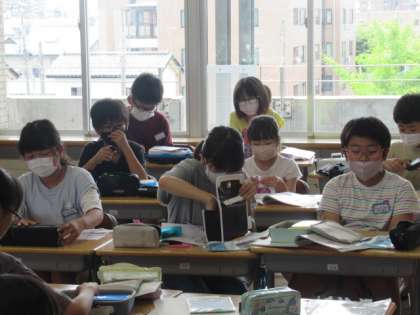 5年生になって始まった家庭科の学習では、裁縫の仕方について学習しています。糸や針の扱い方から、手縫いの仕方について順番に学んでいます。