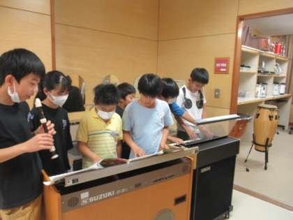 たくさんの楽器に分かれてパート練習をしました。6年生になると、自分でしっかりと練習ができます。