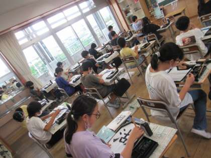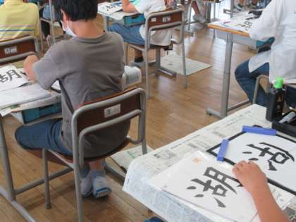書写の時間です。さすが最高学年だけあって、緊張感が違います。