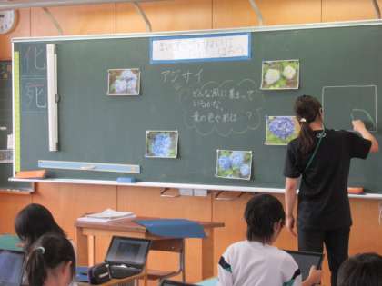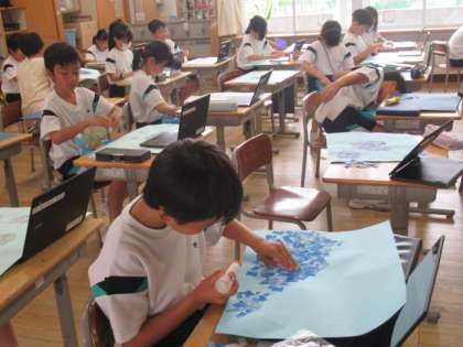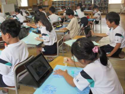 あじさいの形が出来上がってきました。微妙な色の違いが作品の深まりを表現しています。