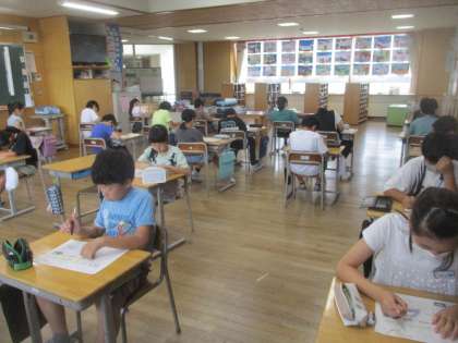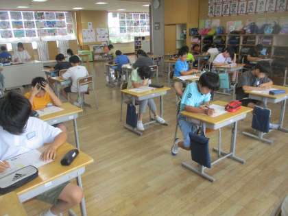 今日が最後の1学期たしかめテストで、教科は社会でした。資料をよく読んで、何度も自分の解答を確認しながらがんばっている様子でした。テストが返ってきたら、見直しをしっかりして、1学期に学習したことを確実にしておきましょう。