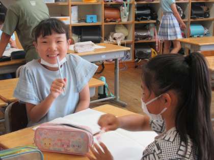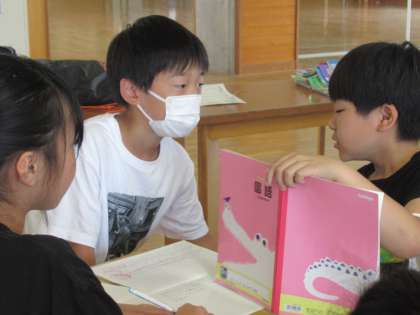 今日はグループやペアで相談しました。楽しく分かりやすい新聞にしようと子供たちは積極的に意見交流をしています。