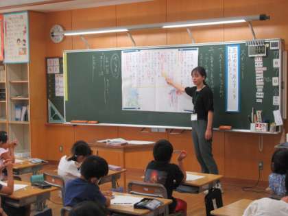 場面全体から大事な叙述を選び出し、まとめていきます。スクリーンに叙述を投影しながら学びを共有していきました。