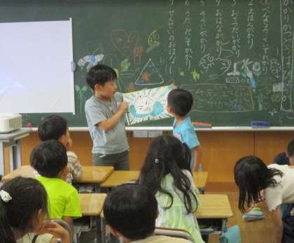 それぞれの係活動で、クラスをもっと楽しくするための出し物を考えて発表しました。絵本係は、おすすめの本を読み聞かせしました。歌・ダンス係は、アンケートで1位だった「パプリカ」をみんなの前で踊りました。他にも楽しい出し物がたくさんあり、笑顔あふれる時間になりました。