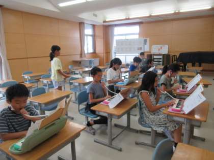 手拍子と鍵盤ハーモニカ、ピアノのみでつくるアンサンブルです。今日は、前半はパート練習をしました。自分たちでしっかりと練習を進め、後半はみんなで合わせることができました。