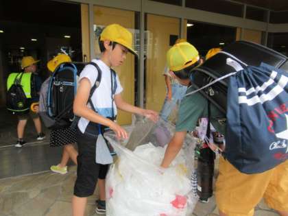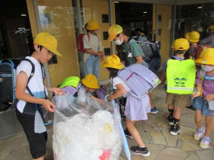 アルミ缶の回収を定期的に行っています。今朝もたくさんの子供たちが持ってきてくれました。