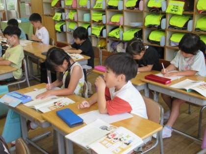 絵日記に表します。「いつ」「だれと」「どこで」「したこと」などを丁寧に書いていきます。楽しい絵日記になりそうですね。