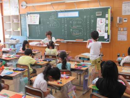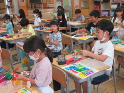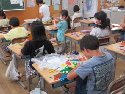国語科教材「スイミー」に思いを寄せながら、作品づくりに取り組みます。さっそくすてきな世界が登場しています。