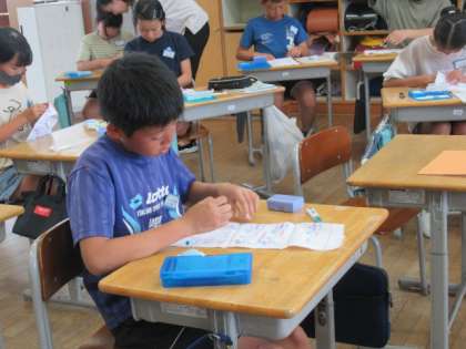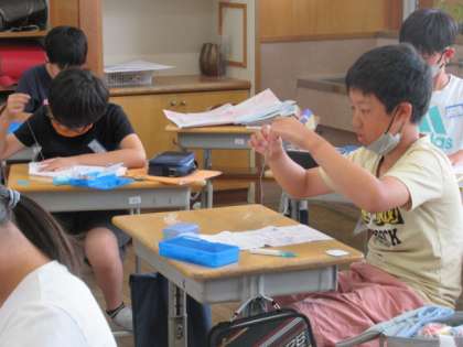 針に糸がなかなか通らず苦戦します。でもみんながんばっています。