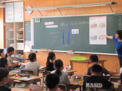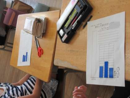 保健室の先生にご指導いただきました。身長がどのように変化するのか考えながら、人の成長には、その度合いやタイミングに個人差があることを確認していきました。