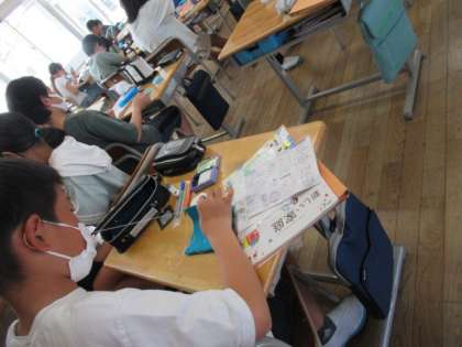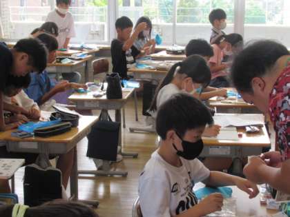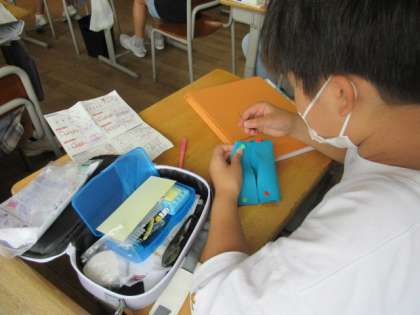 家庭科では、フェルトを用いて、ものづくりに挑戦しました。布地の表と裏を意識しながら丁寧に縫っていきました。