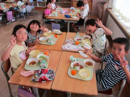 1学期最後の給食だったので、初めてグループになって食べました。友達の顔を見て食べると楽しいですね!