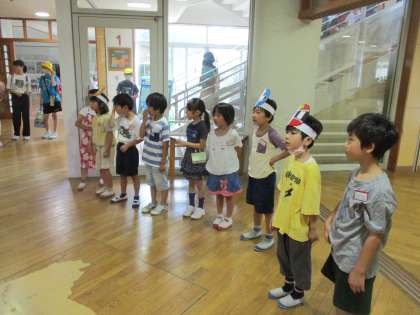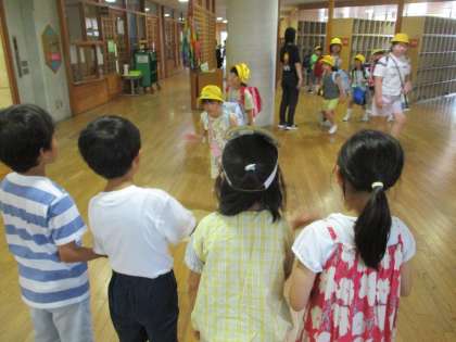 挨拶運動をしている様子です。たくさんの人に挨拶をすると、気持ちがよいことを感じている子どもたちでした。