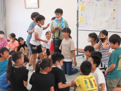 一学期いっぱいでお別れとなるお友達とお別れ集会をしました。内容は、事前にみんなで話し合い、みんなで決めました。ゲームあり、コントあり、宝探しありの楽しい企画になりました。