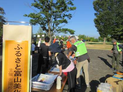 ふるさと富山大作戦が行われ、布瀬南公園、光陽小学校の清掃に取り組みました。