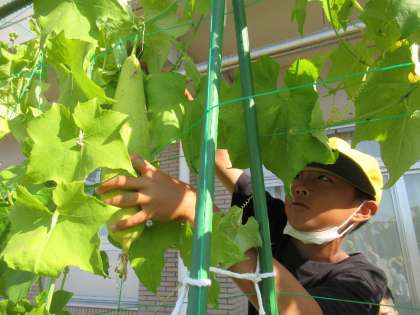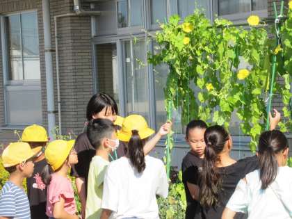 さあ、次々に実ってきているヘチマたち。どのように利用していこうか、子供たちはこれからの学習にますます楽しみいっぱいです。