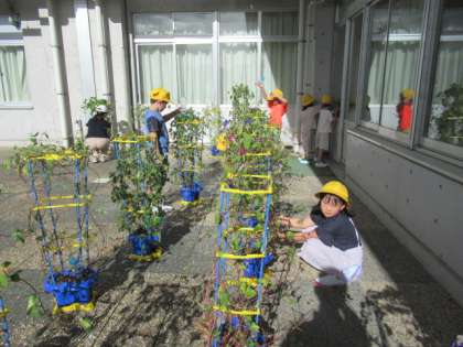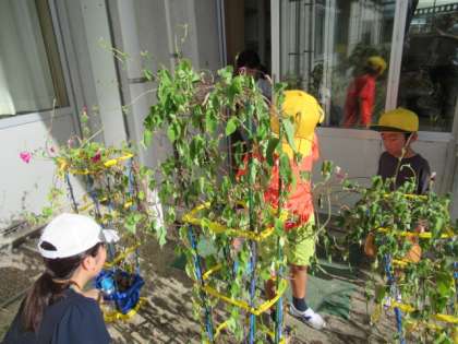 アサガオの観察を再開しています。種をとり、最後はリースもつくります。今朝も子供たちはしっかりとアサガオを見つめています。