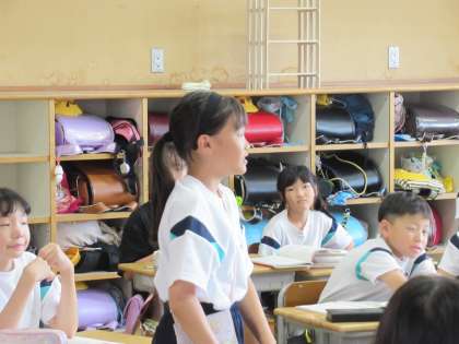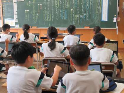 詩「ぼくは川」を読んですてきだなと思ったところに書き込みをし、互いの考えを交流しました。クロームブックを使うことで、簡単に書き込みができ、また共有することができるよさがあります。子供たちは、友達の感じ方を参考にしながら、詩の世界に十分に浸ることができました。