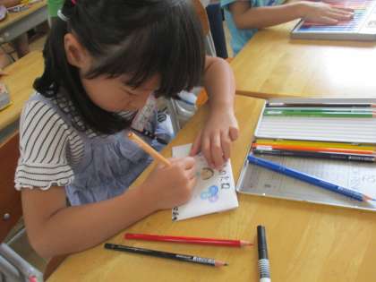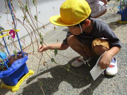 朝顔の種が出来始めました。今日は、朝顔の種を入れる袋を作り、思い思いの絵を描きました。そのあと、一粒一粒、種を大切にとって、袋に集めていました。
