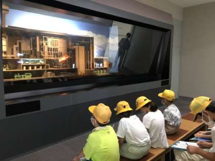 立体動画で、施設の仕組みを学びました。子供たちは分かったことを一生懸命にメモしていきました。