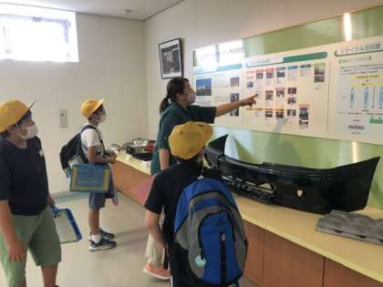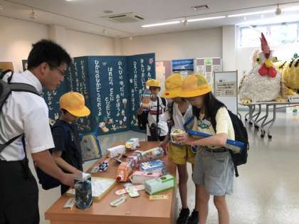 展示室にはリサイクルの様々な取組の様子やリサイクルおもちゃが展示してありました。おもちゃは実際にやってみることもでき、楽しめました。