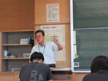 放課後に、教頭先生を講師とした「指揮法」の研修を行い、指揮をするときに大切なことや、テクニックを教えていただきました。最後には全員で校歌の指揮を振ってみました。