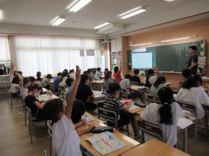 パンフレットには読んだ人に分かってもらうための工夫がたくさんされています。今日はそれを見付け、紹介し合いました。