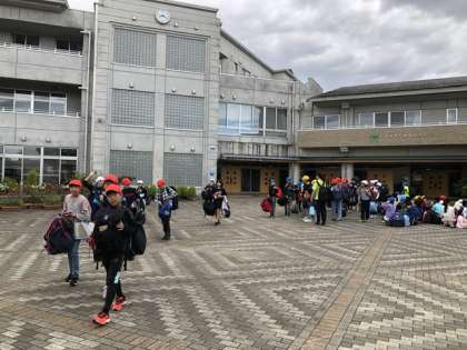 5年生は、1泊2日で集団宿泊学習に出かけます。宿泊地は富山市野外教育活動センター「富山市こどもの村」です。まずびしっと出発式を行いました。