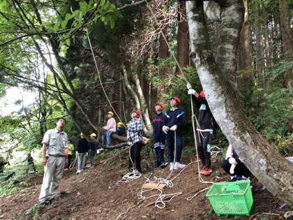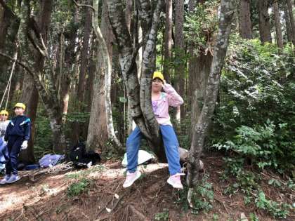 森の中で上手に工夫しています。さらには道具がなくても遊具ができたりも。